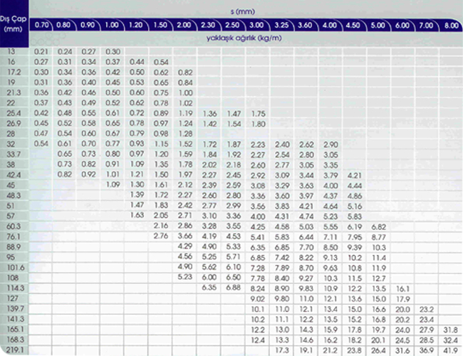 Galvanizli (2.00 mm ve Yukarısı Et Kalınlığında 17.2 - 168.3 mm Arası Çaplarda)